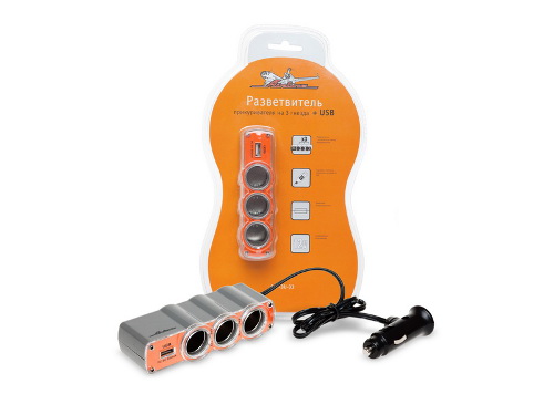 Разветвитель в прикуриватель (3 гнезда+USB) AIRLINE (ASP-3U-03)